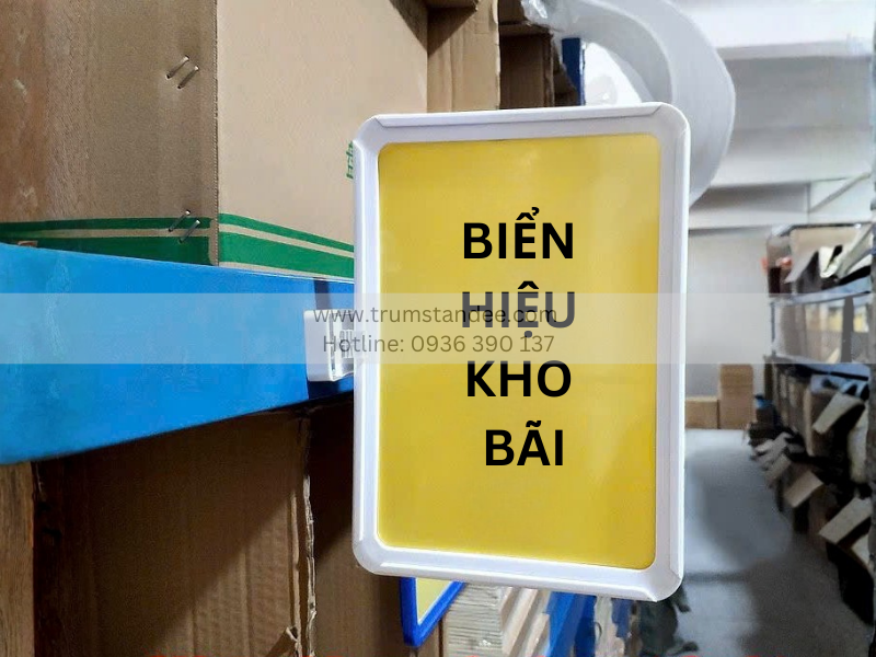 Kệ hàng bán chạy: A6 hoặc A5 để gọn gàng, không che sản phẩm.