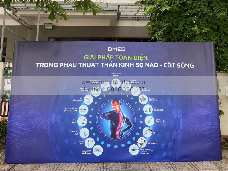 Backdrop di động mạng nhện thường được sử dụng trong các sự kiện nội bộ, hội nghị hoặc lễ kỷ niệm. Sản phẩm giúp tạo không gian chuyên nghiệp và đồng bộ hình ảnh thương hiệu.