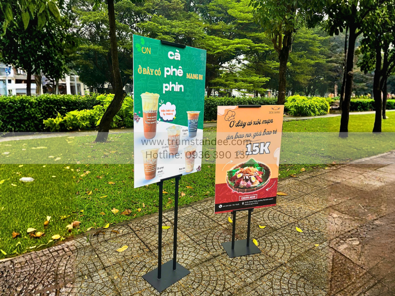 Trên thị trường hiện nay, kệ tranh 2 mặt thường được biết đến với tên gọi standee chữ H – một thiết kế đơn giản nhưng hiệu quả, phù hợp cho các nhu cầu trưng bày linh hoạt tại nhà hàng, cửa hàng, hội chợ, triển lãm hoặc phòng tranh.