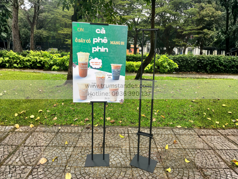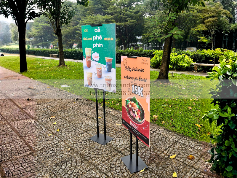 Tại trumstandee, sản phẩm kệ tranh 2 mặt được thiết kế để trưng bày tranh in PP cán fomex, đảm bảo độ phẳng, đẹp và dễ thay nội dung khi cần.