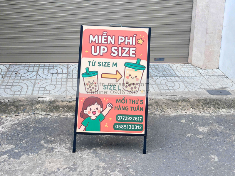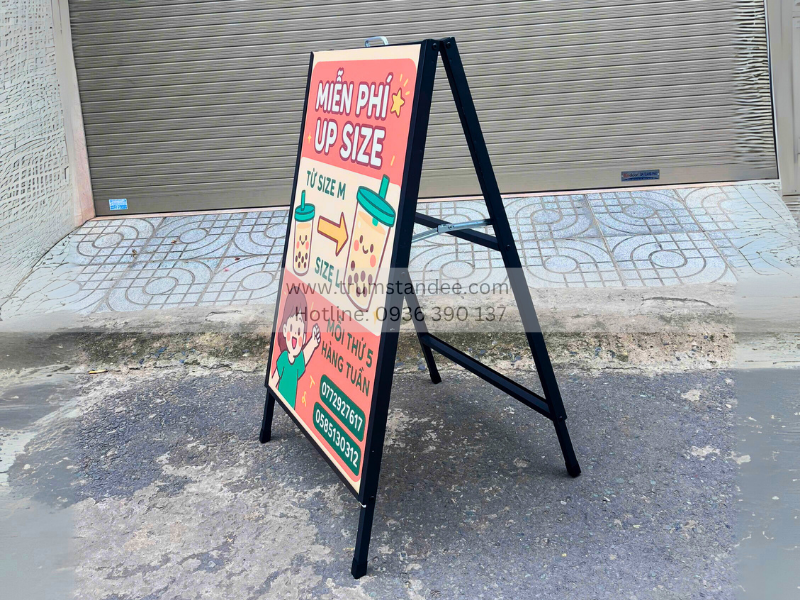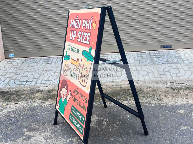 Nếu bạn đang tìm kiếm giải pháp quảng cáo bền – đẹp – hiệu quả, hãy cân nhắc standee chữ A 2 mặt như một lựa chọn đầu tư lâu dài, mang lại giá trị truyền thông vượt trội cho doanh nghiệp.